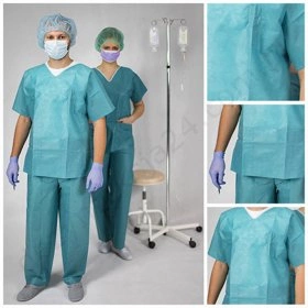 Jednorazowy, niejałowy komplet chirurgiczny składający się z wygodnej bluzy i spodni.
