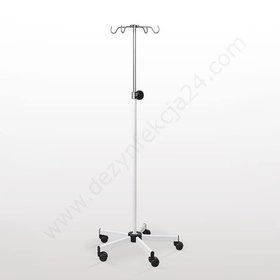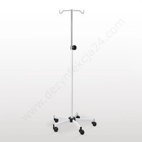 Stojak na kółkach z czterema uchwytami na kroplówki, worki lub produkty żywienia specjalistycznego. Regulowana wysokość.
