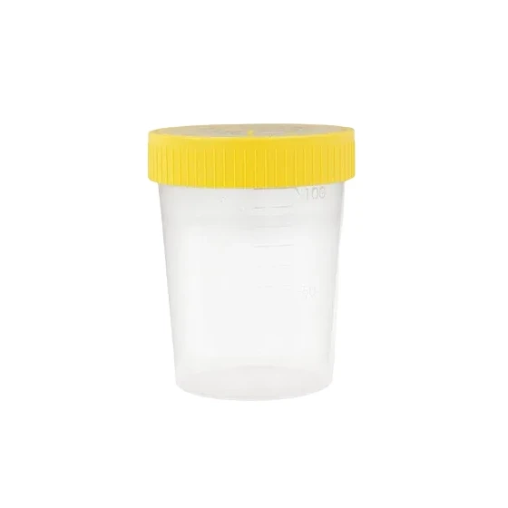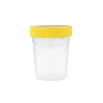 Sterylny pojemnik na mocz o pojemności 100 ml.