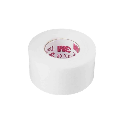 Transpore jest przylepcem z przezroczystej folii, który można łatwo podzielić na krótkie odcinki.