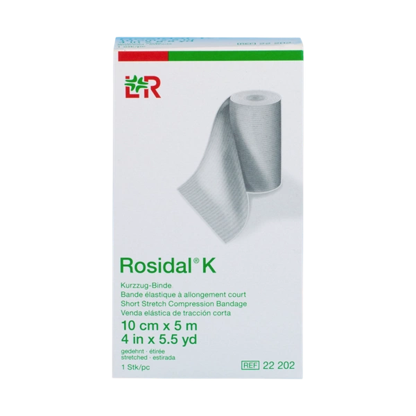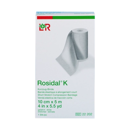 Rosidal K jest tekstylnym bandażem elastycznym o krótkim naciągu i silnym ucisku.