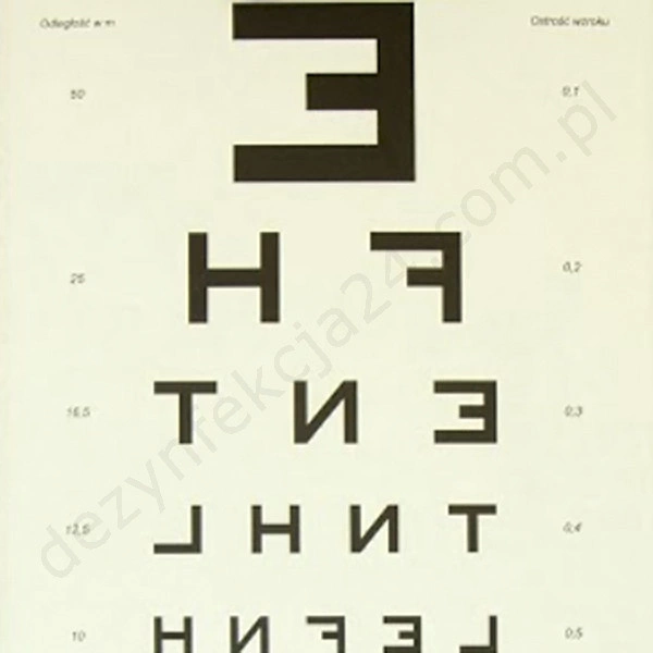 - Tablica okulistyczna (Snellena) literowa - E - obraz odwrócony