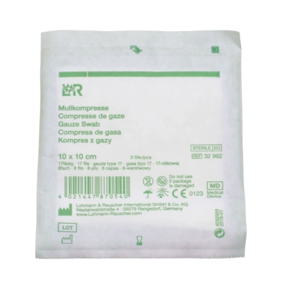 Kompresy gazowe 17. nitkowe 8. warst. 10 x 10 cm. (3 szt.) sterylne - L&R