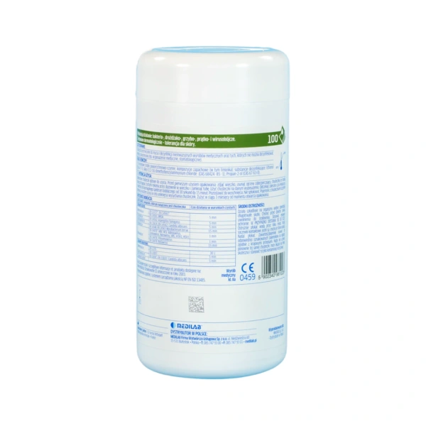 - Bezalkoholowe chusteczki przeznaczone do jednoczesnego mycia i dezynfekcji małych powierzchni, delikatnych wyrobów medycznych i różnego rodzaju wyposażenia.