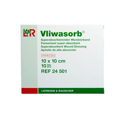 Wysokoabsorpcyjny opatrunek pochłaniający wysięk o 20-krotności własnego ciężaru. Vliwasorb cechuje się tym, że nie oddaje związanego wysięku nawet pod wpływem nacisku mechanicznego oraz chroni skórę wokół rany przed maceracją. Opatrunek 10 x 10 cm pochłania ok. 350 ml cieczy.