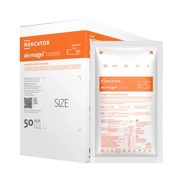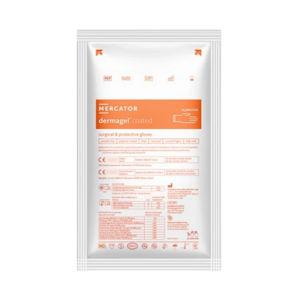 Sterylne rękawice Dermagel to chirurgiczne, bezpudrowe rękawice lateksowe z wewnętrzną warstwą polimerową.
