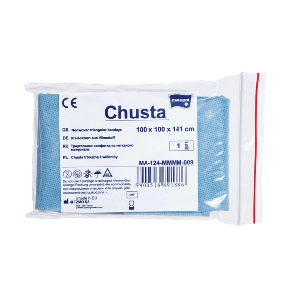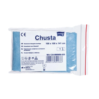 Chusta trójkątna, nazywana też temblakiem, stosowana jest w czasie udzielania pierwszej pomocy do tymczasowego unieruchomienia kończyny w przypadku zwichnięcia albo złamania: