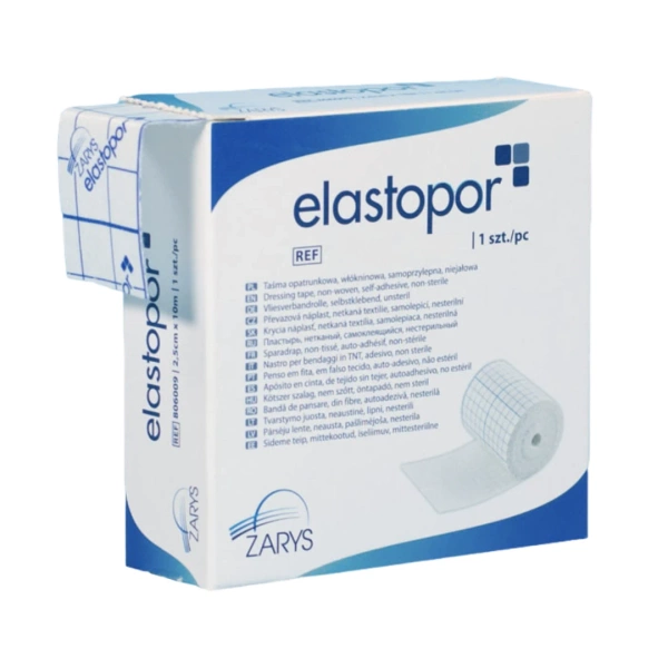 Opakowanie plastra Elastopor jest jednocześnie dyspenserem, który ułatwia rozwijanie plastra bez konieczności wyciągania go z pudełka. Cecha ta zmniejsza ryzyko kontaminacji przylepca.