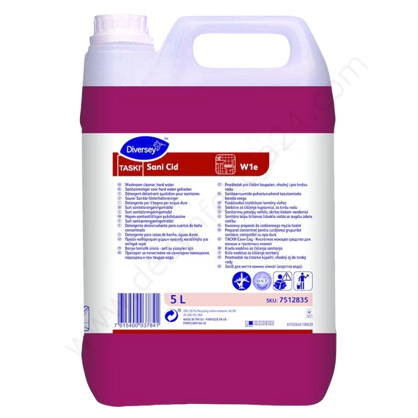 TASKI Sani Cid kanister 5 L. to kwasowy preparat do codziennego mycia kwasoodpornych powierzchni w toaletach i innych pomieszczeniach sanitarnych.