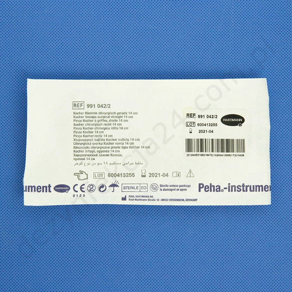 Jednorazowe kleszczyki chirurgiczne proste Kocher 14 cm nr kat. [991042] - Hartmann.