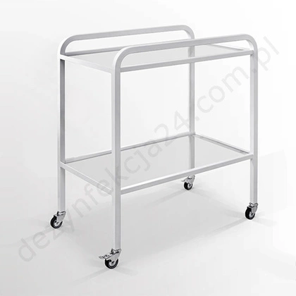Stolik zabiegowy z półkami ze szkła hartowanego, bez pojemników