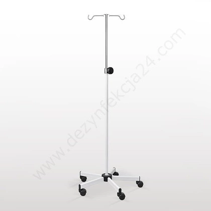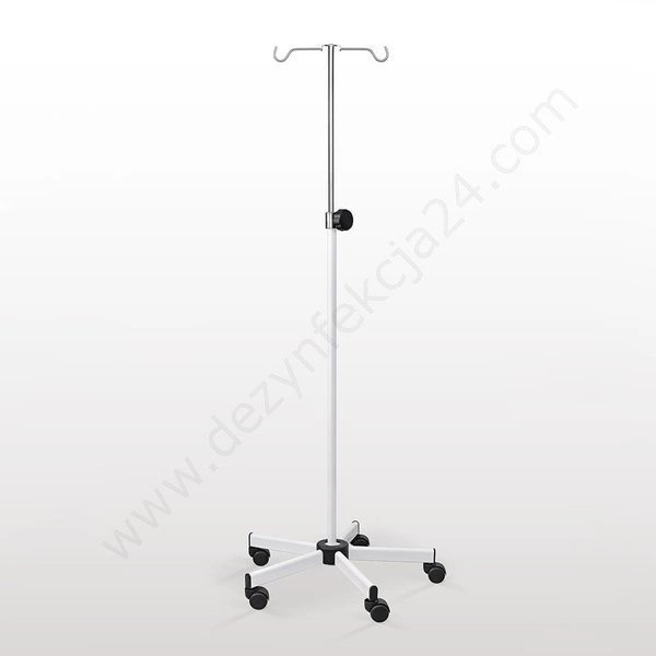 - Stojak na kółkach z dwoma uchwytami na kroplówki, worki lub produkty żywienia specjalistycznego. Regulowana wysokość.