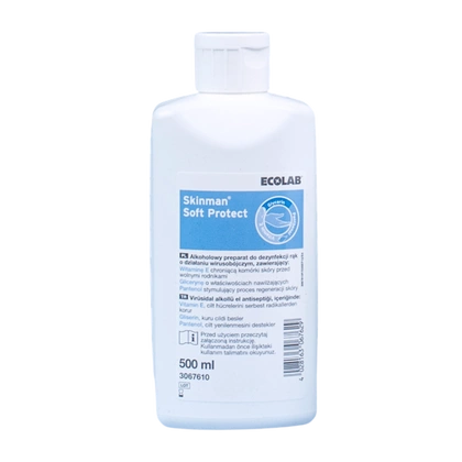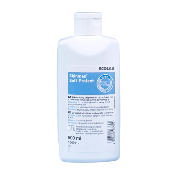 Skinman soft PROTECT to płynny preparat do dezynfekcji rąk posiada pełną skuteczność wirusobójczą i może być stosowany jako jedyne w sobie rozwiązanie do dezynfekcji rąk w całym szpitalu lub przychodni.