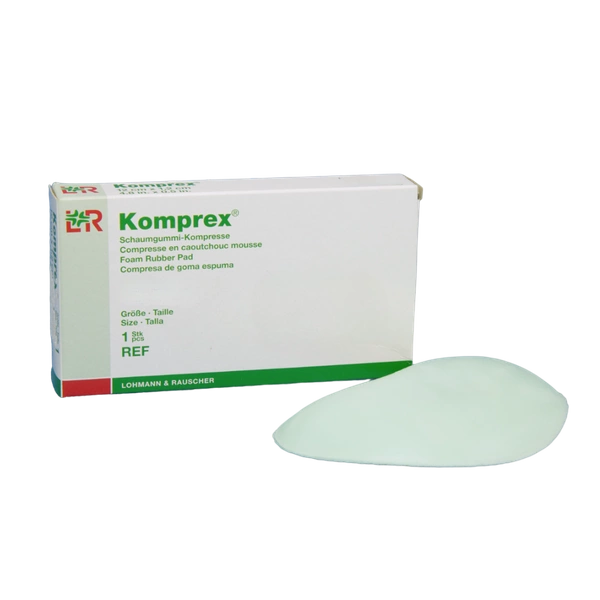 Opatrunek Komprex to gęsta pianka o zamkniętych komorach. Sprzedawany jest w postaci gotowych kształtów, rolek i formatów arkuszy. Piankę można łatwo przycinać do pożądanego kształtu