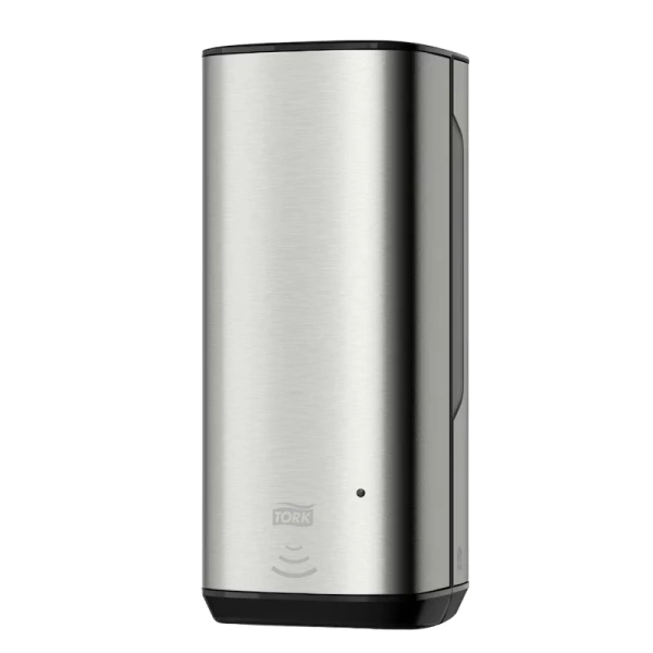 • Dozownik automatyczny Tork ze stali nierdzewnej do dozowania mydła i płynów dezynfekcyjnych.
