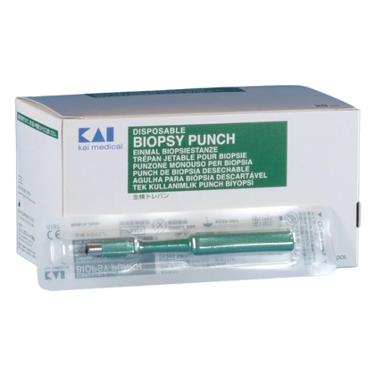 Starannie wykonana igła Biopsy Punch posiada jednolicie ostrą krawędź tnącą, wykonaną z nierdzewnej stali. Sprzęt jest wygodny w użyciu - dzięki żebrowanej rączce i dobremu wyważeniu pewnie leży w dłoni i zapewnia łatwą kontrolę operatora. Produkt stosowny do precyzyjnych zabiegów.