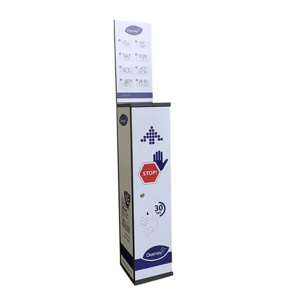 - Oferuje możliwość komunikacji z klientem dzięki specjalnym komunikatom graficznym - ułatwia promowanie przestrzegania zasad higieny rąk.