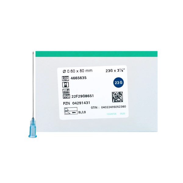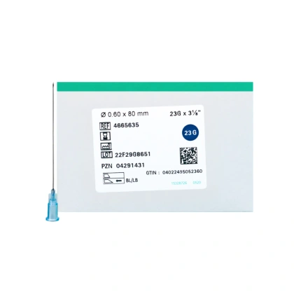 Igły iniekcyjne Sterican firmy BBraun 23G 0,6 x 80 mm. REF: 4665635; opakowanie 100 sztuk.