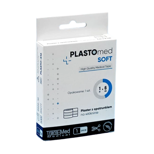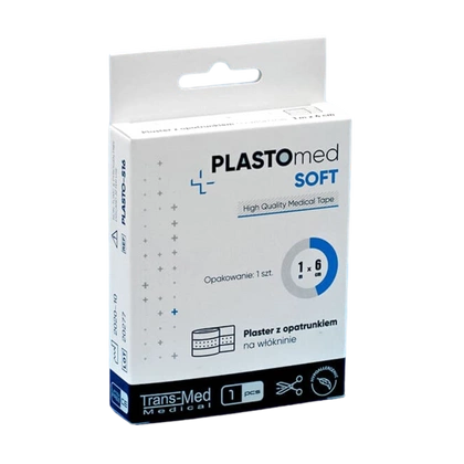 To hipoalergiczny, oddychający przylepiec z wkładem absorpcyjnym. Wodoodporny klej wykazuje przylepność do suchej i mokrej skóry. Plastomed Soft został wykonany z mikroporowatej włókniny. Dopasowuje się do nierówności skóry i ma szerokie zastosowanie.
