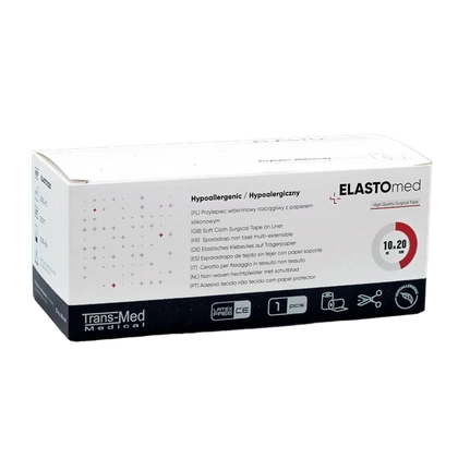 Elastomed to wysokiej jakości przylepiec wykonany z rozciągliwej włókniny na rolce. Ma dodatkową warstwę silikonowego papieru zabezpieczającego.