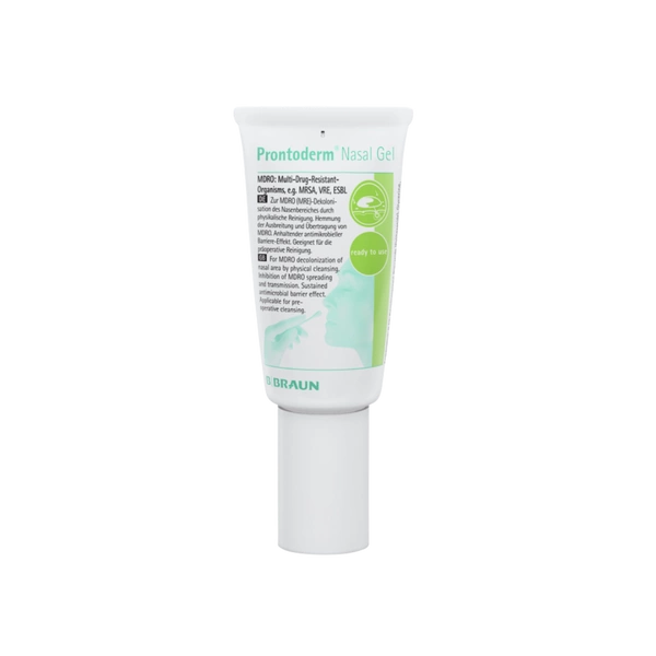 Prontoderm® Nasal Żel to specjalistyczn produkt przeznaczony do dekontaminacji MRSA, jednych z najbardziej narażonych miejsc - nosa i uszu.