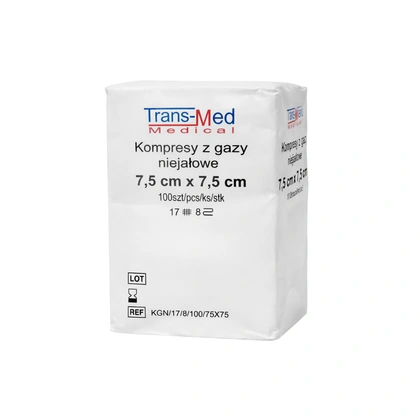Kompresy gazowe 17. nitkowe 8. warst. 7,5 x 7,5 cm (100 szt.) - TransMed