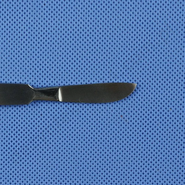 - Precyzyjny nóż chirurgiczny do cięcia tkanek i szwów podczas zabiegów chirurgicznych. Wielokrotnego użytku, ze stali nierdzewnej.