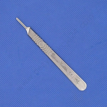 - Uchwyt do skalpela, kompatybilny z ostrzami od rozmiaru 10 do 15 C. Ze stali nierdzewnej. Posiada podziałkę na uchwycie.