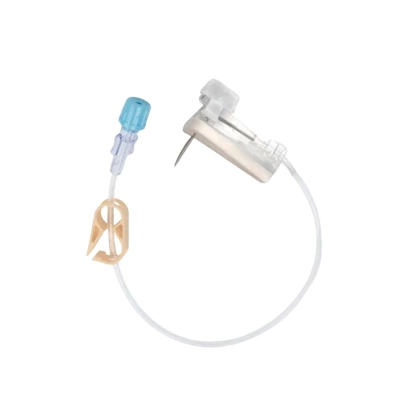 z drenem i opcjonalnym portem bocznym, przeznaczona jest do długotrwałych infuzji, przepłukiwań portu oraz pobierania krwi.Igła o atraumatycznym szlifie Hubera umieszczona jest centralnie w przezroczystym korpusie, co ułatwia wprowadzenie igły i obserwacje miejsca wkłucia. Karbowane skrzydełka zapewniają pewny chwyt przy wprowadzaniu do portu, a następnie mogą zostać zdjęte, aby ułatwić odpowiednie zabezpieczenie igły opatrunkiem. Miękka gąbeczka od spodu korpusu poprawia stabilność igły w porcie oraz komfort pacjenta. Szeroki wybór rozmiarów umożliwia odpowiedni dobór długości igły w zależności od umiejscowienia portu pod skórą.