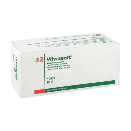 Włóknina, z której wykonane są kompresy VLIWASOFT nie strzępi się, ponadto ma silne właściwości chłonne i praktycznie nie przywiera do rany.