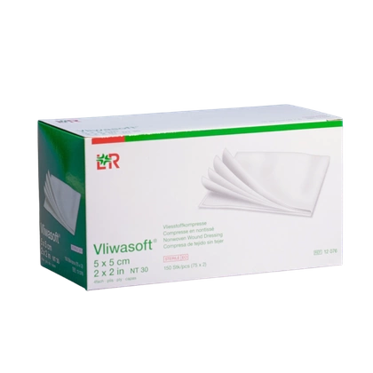 Włóknina, z której wykonane są kompresy VLIWASOFT nie strzępi się, ponadto ma silne właściwości chłonne i praktycznie nie przywiera do rany.