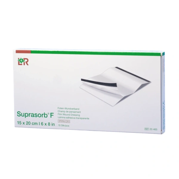 Suprasorb F to przezroczysty opatrunek umożliwiający kontrolę ran oraz miejsc wkłucia. Sprzyja gojeniu się ran przez utrzymanie jej wilgotnego środowiska, a także uniemożliwia kolonizację bakterii.