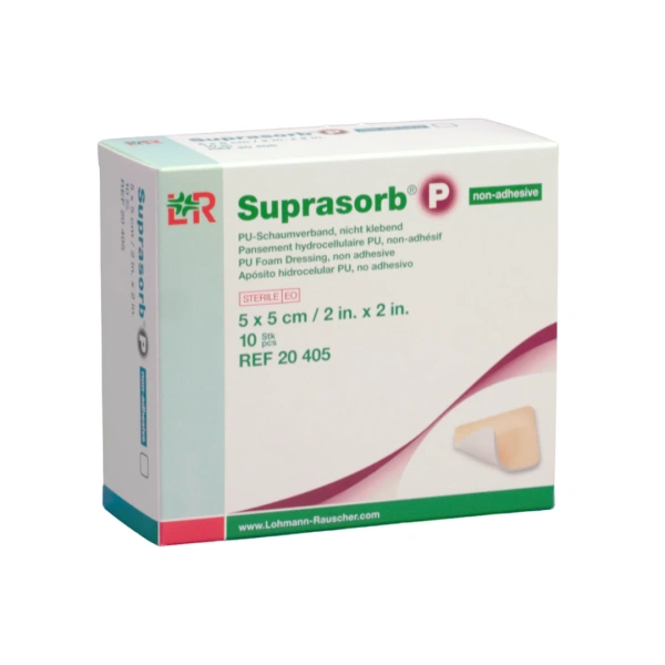 To sterylny opatrunek poliuretanowy skutecznie wchłaniający wysięk z ran. Pianka poliuretanowa o niewielkich porach ma dobre działanie kapilarne na łożysko rany. Materiał Suprasorbu P dopasowuje się do kształtu rany i nie powoduje jątrzenia. Opatrunek jest półprzepuszczalny, zapewniając wilgotne środowisko rany, co sprzyja jej gojeniu.