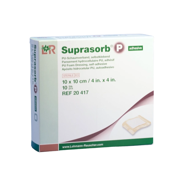 To sterylny opatrunek poliuretanowy skutecznie wchłaniający wysięk z ran. Pianka poliuretanowa o niewielkich porach ma dobre działanie kapilarne na łożysko rany. Materiał Suprasorbu P dopasowuje się do kształtu rany i nie powoduje jątrzenia. Opatrunek jest półprzepuszczalny, zapewniając wilgotne środowisko rany, co sprzyja jej gojeniu.