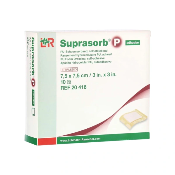 To sterylny opatrunek poliuretanowy skutecznie wchłaniający wysięk z ran. Pianka poliuretanowa o niewielkich porach ma dobre działanie kapilarne na łożysko rany. Materiał Suprasorbu P dopasowuje się do kształtu rany i nie powoduje jątrzenia. Opatrunek jest półprzepuszczalny, zapewniając wilgotne środowisko rany, co sprzyja jej gojeniu.
