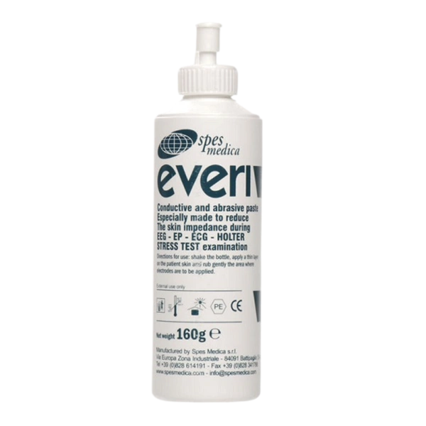 Przewodzący i ścierny preparat do zmniejszania impedancji skóry pacjenta podczas badań EKG, Holtera, wysiłkowych i EEG. Pasta ścierna EVERI skutecznie oczyszcza powierzchnię skóry z martwego naskórka, nawilżając jednocześnie jej wierzchnią warstwę, co zapewnia uzyskanie wysokiej jakości zapisu badań ekg oraz eeg.