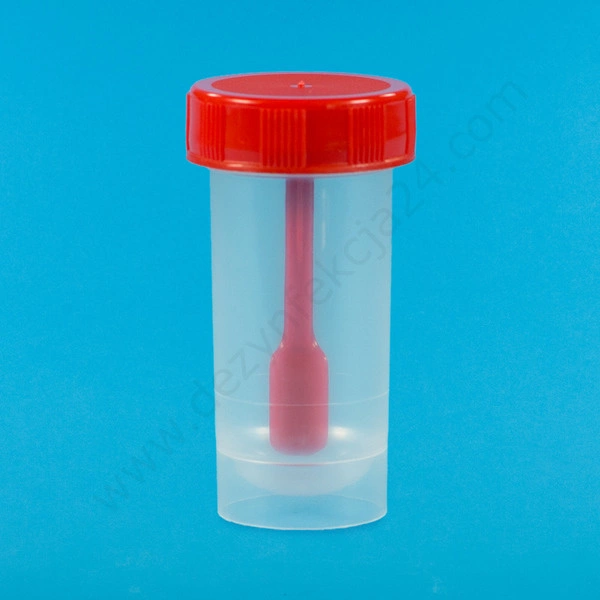 Pojemnik do kału z łopatką , czerwona nakr. (100 szt.) - SANMED