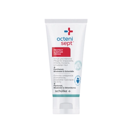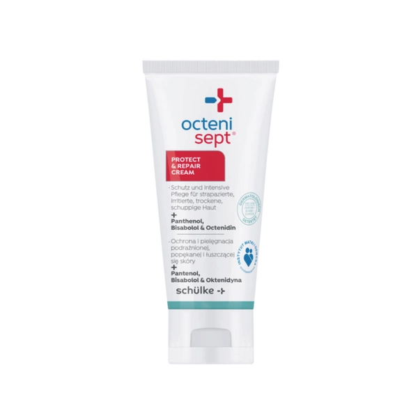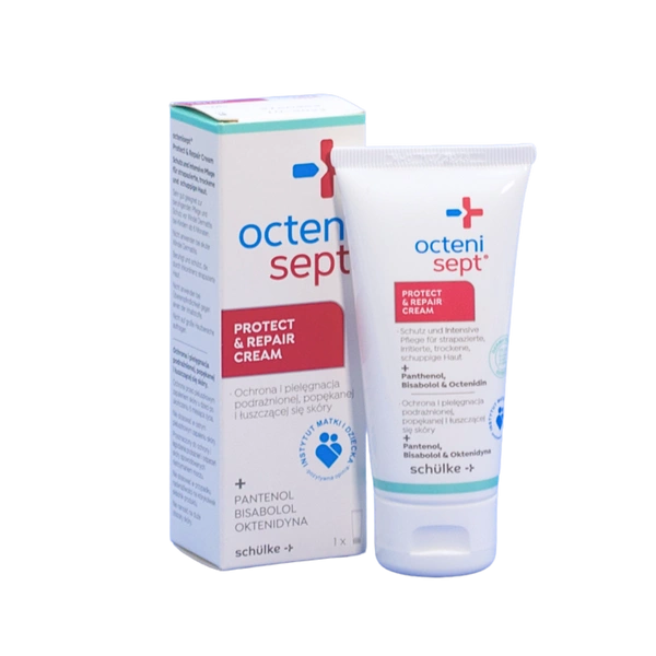 Chroni skórę, regeneruje, łagodzi podrażnienia. Specjalnie dobrana kompozycja składników natłuszcza, nawilża i pielęgnuje skórę: pantenol pobudza naturalną regenerację skóry, bisabolol łagodzi podrażnioną skórę, wazelina zabezpiecza przed niekorzystnym wpływem czynników zewnętrznych natomiast obecna w kremie oktenidyna posiada właściwości antybakteryjne.