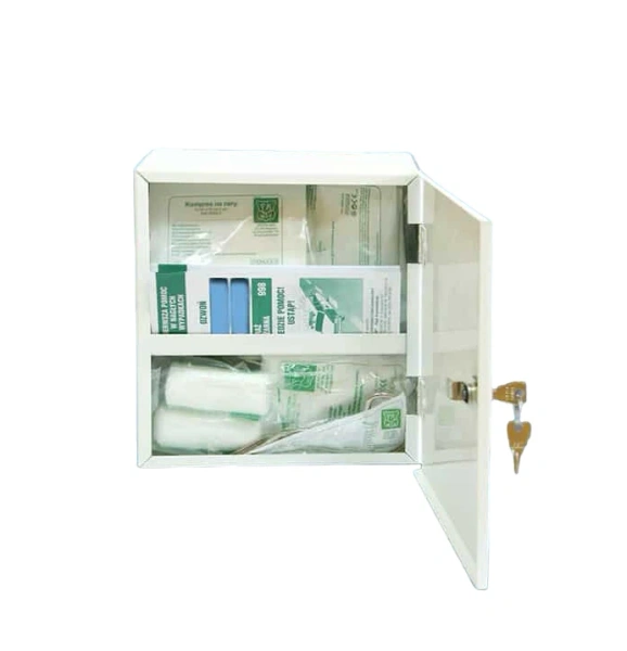 Do zakładów pracy polecamy większe apteczki z zawartością DIN 13157. Ten model może stanowić uzupełnienia w miejscach, w których bliski dostęp do apteczki jest ważny, albo nie ma wiele miejsca dla apteczki.