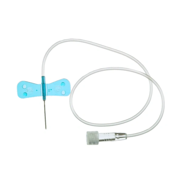 - Igła motylek Terumo - zapewnia komfort pacjenta. Nasadka koloru niebieskiego.