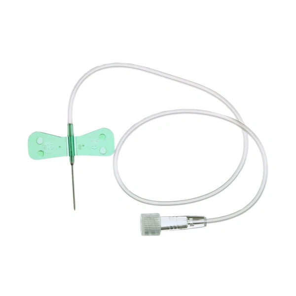 • Igła motylek Surflo do infuzji. Ze skrzydełkami i zabezpieczeniem igły. Skrzydełka koloru zielonego.