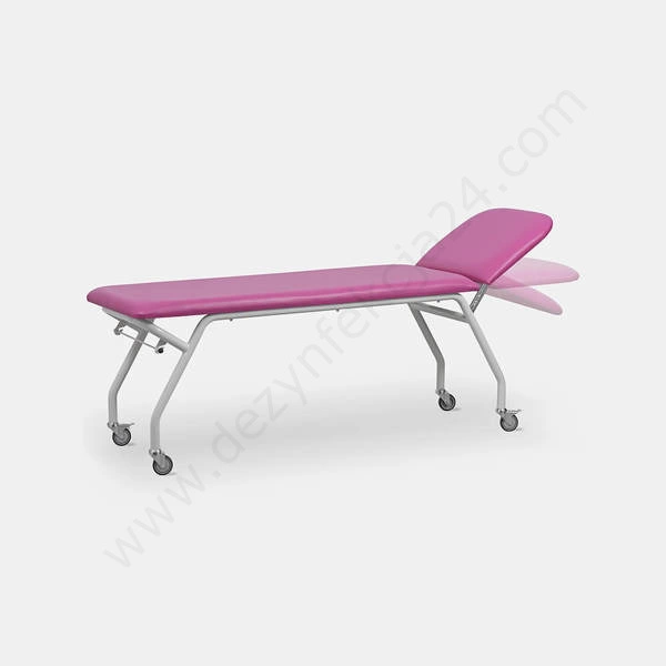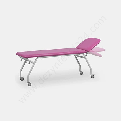 - Kozetka z kołami i stalową ramą oraz regulowanym zagłówkiem (kąt od - 30 do +45°) za pomocą rastomatów. Nieskładalna.