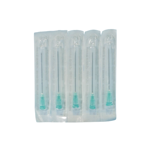 • Jałowa igła iniekcyjna. Nasadka koloru zielonego.