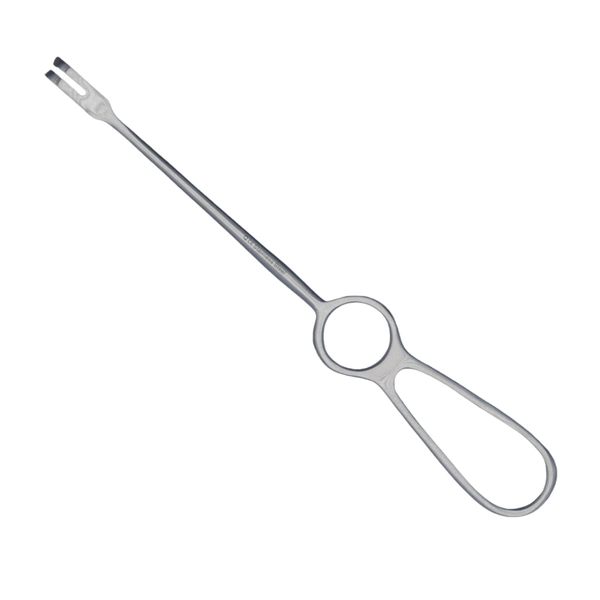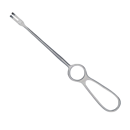 - Retrakcyjny hak Kochera do rozszerzania tkanek w celu dotarcia do przestrzeni podskórnych. Wielokrotnego użytku, ze stali nierdzewnej.