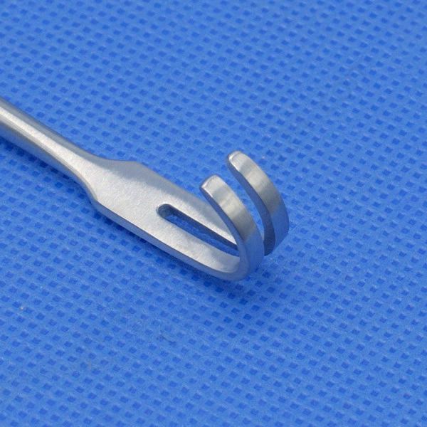 - Retrakcyjny hak Kochera do rozszerzania tkanek w celu dotarcia do przestrzeni podskórnych. Wielokrotnego użytku, ze stali nierdzewnej.