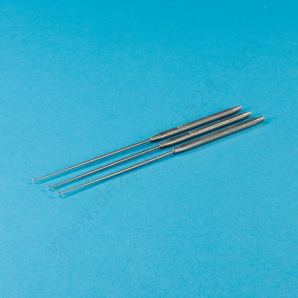 Zakrzywiony haczyk pozwala także na manipulowanie podczas zabiegów związanych z leczeniem błony bębenkowej, czy kosteczek słuchowych.
