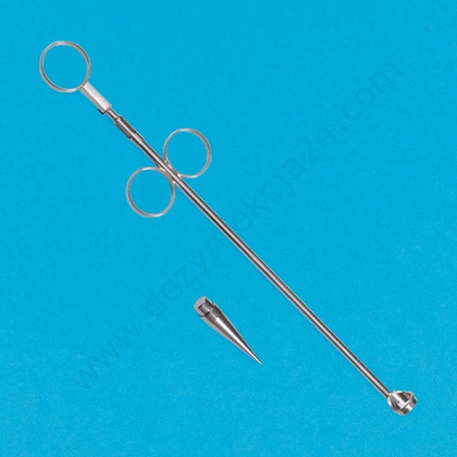 - Narzędzie medyczne do zabiegu ligacji gumowej hemoroidu. Długość 27.5 cm, pod stożek 12 mm.