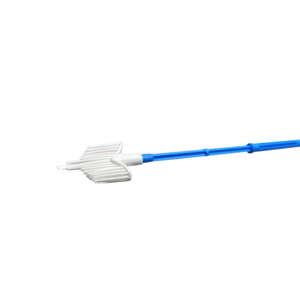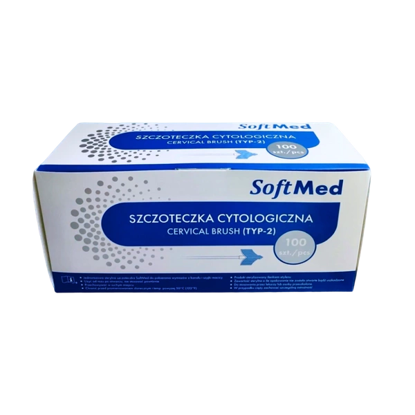 Jednorazowa sterylna szczoteczka cytologiczna z końcówką typu miotełka umożliwia precyzyjne pobranie wymazu komórek z szyjki macicy, kanału szyjki i strefy transformacji. Wykonana z elastycznego, giętkiego włosia. Ergonomiczna rękojeść pozwana na wygodne i precyzyjne przeprowadzenie badania.