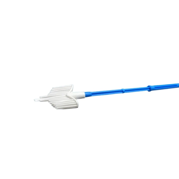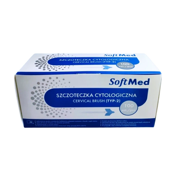 Jednorazowa sterylna szczoteczka cytologiczna z końcówką typu miotełka umożliwia precyzyjne pobranie wymazu komórek z szyjki macicy, kanału szyjki i strefy transformacji. Wykonana z elastycznego, giętkiego włosia. Ergonomiczna rękojeść pozwana na wygodne i precyzyjne przeprowadzenie badania.