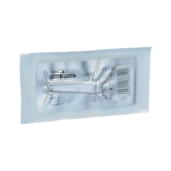 Nasal Sponge to jednorazowy opatrunek wykonany z rozszerzalnej gąbki poliwinylowej i sznurka ułatwiającego usunięcie tamponu.